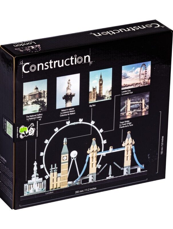 Вы сможете собрать 5 главных достопримечательностей Лондона. Lepin.by. Справа на панели выставлен Тауэрский мост – один из главных символов Лондона и Британии. Рядом с Тауэрским мостом располагается часовая башня Вестминстерского дворца под названием Биг-Бен. Самой яркой и современной достопримечательностью города можно назвать «Лондонский глаз». Это одно из крупнейших колёс обозрения в Европе, позволяющее увидеть центр города с высоты 135 метров. Туристы, любящие и ценящие искусство, с огромным удовольствием посещают лондонскую национальную галерею. Этот уникальный музей расположен на Трафальгарской площади. По соседству с музеем установлена Колонна Нельсона - исторический монумент, построенный в 1843 годы в память об адмирале Горацио Нельсоне, погибшем в Трафальгарском сражении в 1805 году.